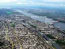 River Park Towers or the Harlem River Park Towers are two 38-story, and two 44-story residential buildings in the Bronx, New York City.[1] Completed in 1975, they became the tallest buildings in the borough, ahead of Tracey Towers and the multiple high-rises encompassing Co-op City. Currently, no other building in the Bronx has exceeded this height. Designed by Davis, Brody & Associates, both buildings were built with the intention to provide affordable, yet somewhat modern housing to the working class.[2] It is built in the same vertically articulated style with "eight-inch-square, rusty-brown 'super bricks'" as Waterside Plaza, which was built in 1973 by the same design firm.[3]
