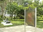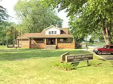 The site was recognized nationally when it was added to the National Register of Historic Places on December 10, 1982. It was officially listed as the River Raisin Battlefield Site (20MR227).[1] In July 1990, the Monroe County Historic Commission and the Monroe County Historic Society opened the River Raisin Battlefield Visitor Center within the site at 1403 East Elm Avenue. The museum contains a few relics from the original battle that were discovered during archeological investigations. The park holds a memorial service every January to commemorate all the soldiers who fought in the Battle of Frenchtown, including the British and Indian soldiers who were allied against the Americans.[11]