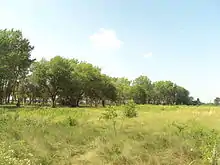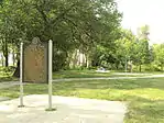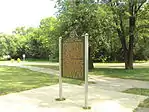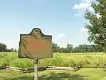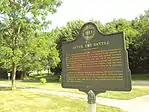 The River Raisin Battlefield Site was listed as a Michigan Historic Site on February 18, 1956, although the exact date at which the park was first organized is unknown. The location of the site is bounded by North Dixie Highway, the River Raisin, Detroit Avenue, and Mason Run Creek.[3][8] The Battle of Frenchtown is so named because it took place in and surrounding the Frenchtown Settlement (1784), on the River Raisin's north bank and within the present-day city limits of Monroe.[9] The area of conflict extended during the three days of battle several miles to the north and south of the current park site. After the battles, Frenchtown was gradually abandoned and the present-day city of Monroe developed from its downtown site 1.5 miles west and on the opposite bank of the River Raisin. The current park area encompasses some 40 acres (16 ha) of undeveloped land on Monroe's east side approximately one-quarter mile (0.4 km) west of Interstate 75. The area contains houses on the outer fringe along East Elm Avenue, and much of the area is occupied by urban development. The River Raisin Paper Company built a large paper mill on the site around 1911, which operated under multiple owners until 1995.[10]