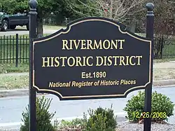 The Rivermont Historic District is a national historic district located in Lynchburg, Virginia. It is a 192.10-acre (0.7774 km2) district consisting of the 300-3400 blocks of Rivermont Avenue as well as Riverside Park and a few properties alongside streets that face onto Rivermont Avenue. It is bounded by the James River on the east and northeast, Blackwater Creek on the east and southeast, Daniel's Hill on the north and Virginia Episcopal Road and the southern end of Boonesboro Road.[3]
