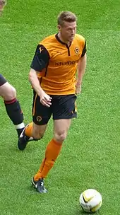On 5 September 2007, in a reserve team match against Walsall, he again suffered knee ligament injury.[16] He scored his only goal for Wolves on 9 February 2008 in a 4–2 home defeat to Stoke City.[17] He was placed on the transfer list in May.[18]