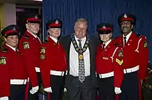 After the election, Ford had outgoing councillor Case Ootes, a former City of Toronto budget chief, head the "transition team". From his campaign team, Ford named Nick Kouvalis as his chief of staff;[55] Mark Towhey, who had drafted his campaign platform, as his policy advisor;[56] and Adrienne Batra, his communications advisor, as press secretary.[57] Councillor Doug Holyday, who had helped elect Doug Ford Sr., was named deputy mayor.[58] For the executive committee of City Council, Ford named councillors who had endorsed him in his campaign. For the inauguration ceremony at the first meeting of the new council, Ford had television commentator Don Cherry introduce him and put the chain of office on him. Cherry garnered some controversy with his remarks. Cherry described how Ford had reversed a mistake of city staff cutting down a tree of a Toronto property owner for no good reason and then billing the property owner, who suffered from Alzheimer's. Cherry added "Put that in your pipe you left-wing kooks" and, in regards to the pink suit he was wearing, "I'm wearing pinko for all the pinkos out there that ride bicycles and everything, I thought I'd get it in."[59] At its first meeting in December 2010, the council voted to cancel the annual $60 personal vehicle registration tax passed by the previous council. The tax cancellation, a campaign promise of Ford's, took effect on January 1, 2011.[60]