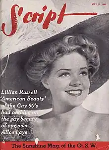 Wagner died of a heart attack on July 20, 1942, less than two weeks before his 70th birthday, in Santa Barbara. His son, Les, a reporter for the original Los Angeles Daily News and later a war correspondent for the Office of War Information in India, took over the editing duties until his India assignment in 1944. Under Les Wagner, the magazine took on a more news-oriented approach. It took up populist causes and critiqued local media, often criticizing as fascist Hearst newspaper coverage and editorials on Constitutional issues and the civil rights of Mexican- and Japanese-Americans.[10] In 1943, Script published editorials defending Charlie Chaplin, who was named as a defendant in a paternity lawsuit by Joan Barry, while Los Angeles newspapers were critical of the filmmaker. Blood tests ultimately determined that Chaplin did not father Barry's child. In 1944–45, Wagner filed dispatches for Script from Calcutta, India, on U.S. and British forces in the China-Burma-India Theater.