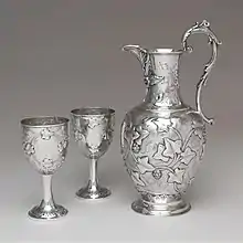 Robert and William Wilson were brothers. Robert, the elder, started making silver at 25 Dey Street, New York City, in 1803. By 1812 he apparently worked in Philadelphia, and was joined by William in 1825. They helped champion the Rococo Revival style. After Robert died in 1846, the company continued to mark goods as R & W Wilson for another 30 years. Around 1860 its factory was located at the northwest corner of Fifth and Cherry Streets. In 1877 the firm was disbanded and Wm Wilson & Son was first listed in the Philadelphia "Jewelers, Silversmiths & Watchmakers Directory." This firm continued operation until 1909. Notable Philadelphia silversmith Peter L. Krider worked as an apprentice and a journeyman with the firm of Robert & William Wilson.