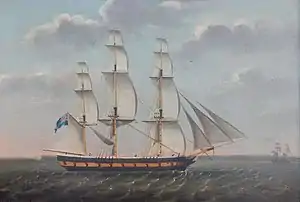 The frigate HMS Syren, Captain John Manley, captured Robert on 13 June 1793 in the Bay of Biscay after a chase of 28 hours.[8] One report gave Robert 22 guns and a complement of 200 men, but all other reports trimmed this to 16 carriage and eight swivel guns, and 170 men.[9][10] Robert had been out three days from Bordeaux, had captured nothing.