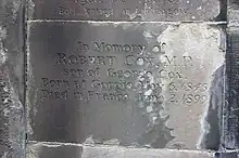 He is buried in Dean Cemetery in Edinburgh, in its north-east section not far from the entrance. He is also memorialised on his parents' grave in St Cuthbert's churchyard in the city centre.