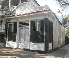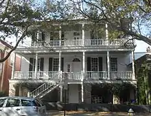 The house began a Charleston single house with two-story piazzas overlooking John Street to the south. The interior features Adamesque woodwork.