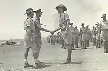 ![]() Risson viewing a military demonstration in Queensland, 1943 | |