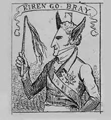 After the rebellion (during which Mount Stewart was briefly occupied),[33] Castlrereagh was content that leading United Irishmen in the Presbyterian north be allowed American exile. An exception was made in the case of James Porter, executed (again despite the entreaties of Lady Frances) following a court martial before Castlereagh's father, Lord Londonderry.[34] Porter, who had been his family's Presbyterian minister and, in 1790, his election agent, had become a household name in Ulster as the author of a satire of the county gentry, Billy Bluff, in which Londonderry was serially lampooned as an inarticulate tyrant.[35][36]