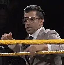 Robert Strauss[6] (born October 1, 1983) is an American professional wrestler and manager. He is currently signed to WWE, where he performs on the NXT brand as a manager and occasional wrestler under the ring name Mr. Stone (Or Robert Stone). He is best known for his time in Total Nonstop Action Wrestling under the ring name Robbie E, where he is a former two-time TNA World Tag Team Champion as part of The BroMans with Jessie Godderz, while also being a former one-time TNA Television Champion and TNA X Division Champion.