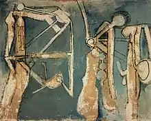 Matta's connections with Breton's surrealist movement were severed following a private disagreement concerning Arshile Gorky and his family. Matta was accused of indirectly causing Gorky's suicide (in response to Matta's relationship with the Armenian-American painter's wife). This led to his expulsion from the group, but by this time Matta's own name was becoming widely known. He divided his life between Europe and South America during the 1950s and 1960s, successfully combining the political and the semi-abstract in epic surreal canvases. Matta believed that art and poetry can change lives, and was very involved in the social movements of the 1960s and 1970s. He was a strong supporter of the socialist government of president Salvador Allende in Chile. A 4x24 meter mural of his entitled The First Goal of the Chilean People, was painted over with 16 coats of paint by the military regime of Augusto Pinochet following their violent overthrow of Salvador Allende in 1973. In 2005 the mural was discovered by local officials. In 2008 the mural was completely restored at a cost of $43,000, and it is displayed today in Santiago at the La Granja city hall.[3]