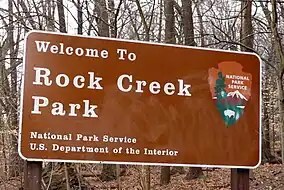 ![]() The entrance to Rock Creek Park at its Maryland border entrance in 2010 | |