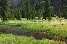 This article incorporates public domain material from "Montane Ecosystem". Rocky Mountain National Park. National Park Service. Retrieved November 1, 2016. - "Watching Wildlife - Horseshoe Park". Rocky Mountain National Park. Archived from the original on April 28, 2021. Retrieved November 1, 2016.