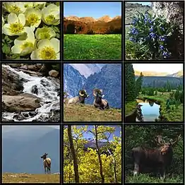 This article incorporates public domain material from "Majestic view from the old, one-way, dirt Fall River Road in Rocky Mountain National Park in the Front Range of the spectacular and high Rockies in north-central Colorado". Library of Congress - Prints & Photographs Online Catalog. Library of Congress. Retrieved October 28, 2016. - "Ecosystems of Rocky Teacher Guide" (PDF). Rocky Mountain National Park. p. 4. Retrieved November 3, 2016.