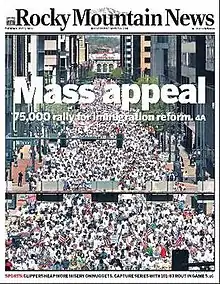 The Rocky Mountain News (nicknamed the Rocky[2]) was a daily newspaper published in Denver, Colorado, from April 23, 1859, until February 27, 2009. It was owned by the E. W. Scripps Company from 1926 until its closing. As of March 2006, the Monday–Friday circulation was 255,427.[1] From the 1940s until 2009, the newspaper was printed in a tabloid format.