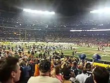 The stadium was renamed "Rogers Centre" following the 2005 purchase of the stadium by Rogers Communications, the corporation that also owns the Toronto Blue Jays.[1][12] The venue is noted for being the first stadium to have a fully retractable motorized roof, as well as for the 348-room hotel attached to it with 70 rooms overlooking the field.[13] It is also the last North American major-league stadium built to accommodate both football and baseball. The stadium served as the site of both the opening and closing ceremonies of the 2015 Pan American Games (renamed the Pan-Am Dome or Pan-Am Ceremonies Venue due to sponsorship regulations).[14]