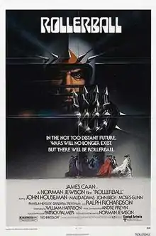 Rollerball is a 1975 science fiction sports film directed and produced by Norman Jewison.[7] It stars James Caan, John Houseman, Maud Adams, John Beck, Moses Gunn and Ralph Richardson. The screenplay, written by William Harrison,[8] adapted his own short story "Roller Ball Murder", which had first appeared in the September 1973 issue of Esquire.[9]