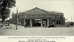 Roma Porta San Paolo is the terminal train station of the Rome–Lido railway line in Rome (Italy). The station is connected to the station Piramide of the metro (line B) and to the Roma Ostiense railway station of the Ferrovie dello Stato Italiane. It has six tracks.