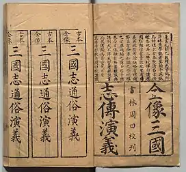 Romance of the Three Kingdoms is traditionally attributed to Luo Guanzhong,[7] a playwright who lived sometime between 1315 and 1400 (late Yuan to early Ming period) known for compiling historical plays in styles which were prevalent during the Yuan period.[8] It was first printed in 1522[8] as Sanguozhi Tongsu Yanyi (三國志通俗演義/三国志通俗演义) in an edition which bore a preface dated 1494.[9] The text may well have circulated before either date in handwritten manuscripts.[9]