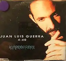 Rompiendo Fuente (English: Water Break) is the sixth single of Juan Luis Guerra sixth studio album Areito, released in 1993 by Karem Records. The song was written and produced by Juan Luis Guerra and his band 4:40. The tracks is a merengue with some elements of Afropop inspired Taino Indigenous.[1] The song is a metaphor lamenting precarious situation of a woman working on a factory that is giving a birth to a girl.[2] The track receive favorable reviews by the critics. Howell Llewelyn from Billboard on an article wrote about the song "the most touching song ever written by a man on the subject of giving birth".[3]