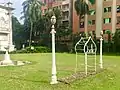 The lodge contains on the ground floor eight apartments including a 30’-0” + 15’-0” central hall whilst the upper floor has a further five apartments including a large dance hall measuring 45’-0” + 15’-0” in the middle. All the apartments are furnished with elite mosaic, numerous colorful skylights and wall ornaments. Some of them are adorn with foliage and animal outlines in wood, colored Belgium glass and iron. An ostentatious dome is above the dance hall, and the dance circle is surrounded by cascades. The ceiling is floral patterned and embellished with green mirrors. Tall crystal chandeliers hang from the ceiling. An intricately designed spiral staircase before the ballroom leads to the roof. At the back of the building to the east there is a verandah triple-arched entrance porch which leads to a staircase for the upper storey. Originally there was an ornamental fountain in the garden, the structure of which still remains. There are several classical marble statues in the garden, although the rose garden that gave the mansion its name does not exist anymore.