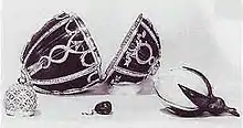 For decades, the surprises were considered to be lost, but in an article published in September 2021 in The Burlington Magazine[6] and a second one published in early 2022 in the Fabergé Research Newsletter, it is claimed they have been identified.[7] They are the surprises contained in the so-called Lapis Lazuli egg owned by the Cleveland Museum of Art.