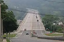 The William Cullen Bryant Viaduct (carrying New York State Route 25A) passes through and serves as a bypass of Roslyn.[29][43] Prior to the opening of the Bryant Viaduct, 25A traveled through the heart of the village's downtown (along Old Northern Boulevard) and was notorious for its traffic jams in the area.[43]