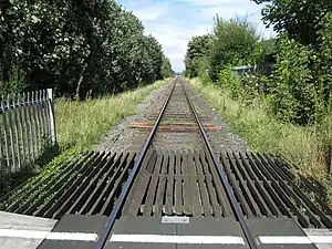 ![]() Single-track near the former station site in 2009, north towards Chester, prior to track redoubling in 2017. | |
