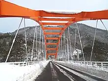 The only tunnel on the route is at Sennin Toge Pass. It is about two-and-a-half kilometers in length. Despite the pass, the road in Kamaishi is quite contorted at the higher elevations. Near the western entrance to the tunnel there are shallow limestone caves that produce ice formations resembling stalactites and stalagmites in winter. In the hills above Rikuchū-Ōhashi Station in Kamaishi, there was a Japanese prisoner of war camp for a short time before the end of World War II.