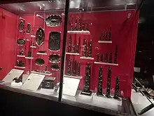 The Royal BC Museum includes three permanent galleries: Natural History,[3] Becoming BC,[4] and the First Peoples Gallery.[5] The museum's collections comprise approximately 7 million objects, including natural history specimens, artifacts, and archival records.[6] The natural history collections have 750,000 records of specimens almost exclusively from BC and neighbouring states, provinces, or territories. The collections are divided into eight disciplines: Entomology, Botany, Palaeontology, Ichthyology, Invertebrate Zoology, Herpetology, Mammalogy, and Ornithology. The museum also hosts touring exhibitions. Previous exhibitions have included artifacts related to the RMS Titanic, Leonardo da Vinci, Egyptian artifacts, the Vikings, the British Columbia gold rushes and Genghis Khan. The Royal BC Museum partners with and houses the IMAX Victoria theater, which shows educational films as well as commercial entertainment.[7]