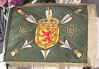 The Royal Company has two standards. The first of these bears on one side Mars and Cupid encircled in a wreath of thistles, with this motto: In peace and war. On the other, a yew tree, with two men dressed and equipped as archers, encircled as the former motto: Dal gloria vires (Glory Gives Strength). The other standard displays on one side, on a field or, a lion rampant gules, encircled with a double tressure flory-counter flory of the second (the Royal Arms of Scotland); on the top, a thistle and crown, motto: Nemo me impune lacessit (no one provokes me with impunity). On the other, St Andrew on the cross on field argent; at the top, a crown, motto: Dulce pro patria periculum (danger is sweet for one's country).[25]