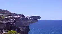 - Wattamolla Beach – a large lagoon tucked behind the beach, which then enters the sea via an ankle-deep stream at one end of the beach. Families enjoy playing in the calm lagoon with their young children whilst adults enjoy the clean, even surf. There is substantial parking places provided but on busy summer Sundays and public holidays, it can fill up early. Wattamolla is a sheltered cove with a sandy bar at the inlet behind which lies a lagoon fed by the waters of Wattamolla Creek and Coote Creek. Coote Creek finds its way down another valley, then as a beautiful waterfall, it rushes over a sandstone rock face into the lagoon below.[14]