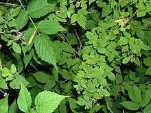 Rubus strigosus, the American red raspberry or American raspberry, is a species of Rubus native to much of North America. It was often treated as a variety or subspecies of the closely related Eurasian Rubus idaeus (red raspberry or European red raspberry),[1][2] but is now more commonly treated as a distinct species.[3][4][5] Many of the commercial raspberry cultivars grown for their fruit derive from hybrids between R. strigosus and R. idaeus; see Raspberry for more details.