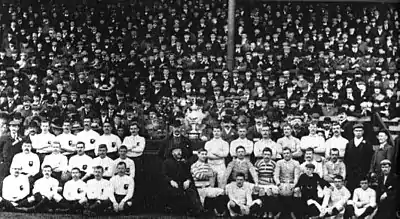 In 1895, a schism in Rugby football resulted in the formation of the Northern Rugby Football Union (NRFU).[13] The success of working class northern teams led to some compensating players who otherwise would be on their job and earning income on Saturdays. This led to the RFU reacting to enforce the amateur principle of the sport, preventing "broken time payments" to players who had taken time off work to play rugby. Northern teams typically had more working class players (coal miners, mill workers etc.) who could not afford to play without this compensation, in contrast to affluent southern teams who had other sources of income to sustain the amateur principle.[2] In 1895, a decree by the RFU banning the playing of rugby at grounds where entrance fees were charged led to twenty-two clubs (including Stockport, who negotiated by telephone) meeting at the George Hotel, Huddersfield on 29 August 1895 and forming the "Northern Rugby Football Union".[14] Within fifteen years of that first meeting in Huddersfield, more than 200 RFU clubs had left to join the rugby league.