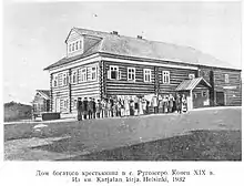 The Rukajärvi church school was first mentioned in 1841. In 1879 the village got a school financed by the ministry of education, in 1910 a library and in 1912 a zemstvo post station. After the October Revolution Rukajärvi suffered from famine and unrest caused by the Kindred Nation Wars. In November 1921 Finns invading the village shot 11 communists and three officials in Rukajärvi. After the war most of the people fled to Finland.[12]