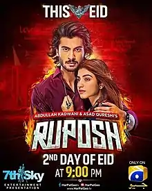 Ruposh (Urdu: روپوش) is a 2022 Pakistani romantic television film produced by Abdullah Kadwani and Asad Qureshi (producer) under their production house 7th Sky Entertainment. It was written by Nooran Makhdoom and directed by Ali Faizan, starring Haroon Kadwani in lead role opposite Kinza Hashmi.[1] The television film premiered on 7 January 2022 in Pakistan on Geo Entertainment.[2]