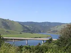 View of the Russian River and the Russian River Valley showing the California State Route 1 bridge near Jenner