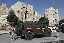 On 8 October 2015, the number of air raids increased significantly up to over 60 sorties a day, a tempo maintained for the next 2 days.[237] The Russian defense ministry announced on 9 October that up to sixty ISIL targets were hit in the past 24 hours, reportedly killing 300 militants in the most intense strikes so far. One of the raids targeted a Liwa al-Haqq base in the Raqqa Governorate using KAB-500KR precision-guided bombs, in which reportedly two senior ISIL commanders and up to 200 militants were killed, despite the lack of any connection between Liwa al-Haqq and ISIL. Another assault destroyed a former prison near Aleppo that was used by ISIL as a base and munitions depot, also killing scores of militants. Rebel training sites in the Latakia and Idlib provinces were reportedly hit as well.[238] Meanwhile, ISIL militants made advances in the Aleppo area on 9 October, seizing several villages, including Tal Qrah, Tal Sousin, and Kfar Qares, in what the Associated Press called a "lightning attack". The attacks were unencumbered by either Russian or United States-led coalition airstrikes. The ISIL advance came at the expense of rebel groups also targeted by Russian and Syrian forces.[239] In mid-October 2015, a joint Russian-Syrian-Iranian-Hezbollah offensive targeting rebels in Aleppo went ahead.[240][241]