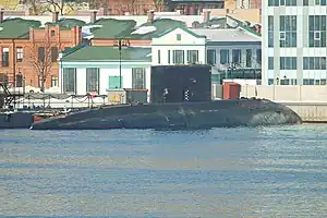 Construction began on the submarine on 22 February 1981, when it was laid down at Leninsky Komsomol Shipyard in Komsomolsk-on-Amur as B-260. It was launched on 23 August and was commissioned on 30 December. It did not receive the name Chita until 19 March 2006, when it was sponsored by the city administration of Chita.[1][2] While in service, Chita was assigned to the Pacific Fleet, and the ship was decommissioned and laid up in 2013.