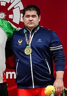 Rustam Djangabaev (born 25 August 1993) is an Uzbekistani heavyweight weightlifter. He won a gold medal at the 2017 Asian Championships and a bronze at the 2018 Asian Games. He placed sixth at the 2016 Olympics.[2]