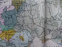 After the Partitions of Poland, Rutheni "came to be associated primarily with those [East Slavs] who lived under the Habsburg monarchy" (and was used as an official designation in the Austrian Empire after 1843).[27] In the Kingdom of Hungary, Ruthene was used as the official term for the Rusyn people (Hungarian: rutén or ruszin) of Transcarpathia until 1945.[28] During the early twentieth century the term "became even more restricted: it was generally used to refer to the inhabitants of Transcarpathia and to Transcarpathian emigrants in the United States", for whom the terms Rusyn and Carpatho-Rusyn are more commonly used since the 1970s.[27]