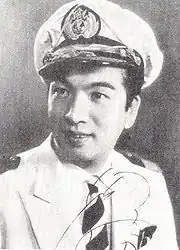 Some of the country's first major stars were singer Ichiro Fujiyama and composer Masao Koga. Koga attempted to initiate fusion of Western jazz and Japanese dodoitsu.[16] Fujiyama's 1931 song "Sake wa Namida ka Tameiki ka" (酒は涙か溜息か, lit. "Is Sake Tears or Sighs?"), composed by Koga, became a major hit in Japan. This song created a fusion of Fujiyama's crooning and Koga's guitar play.[16] Using the vocal technic Mezza Voce with a microphone, Fujiyama sang the song by the deep voice of not Opera's G minor but D minor.[16] Fujiyama's song "Oka o Koete" (丘を越えて, lit. "Beyond the Hill") sold 600,000 copies.[17] However, Fujiyama was an elite student, who specialized Western classical music in the Tokyo Music School. Ryūkōka songs often dealt with the "Ero Guro Nansensu" things.[18] Since his school regarded ryūkōka as bad form at that time, Fujiyama was once suspended from the school, though Fujiyama was not dismissed from the school because Klaus Pringsheim Sr., a professor of the school, opposed the proposal of Fujiyama's expulsion.[16]