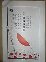 After the war, the songs during the war have been regarded as a taboo even in Japan despite those historical importance.[18] One of war songs, "Shussei Heishi o Okuru Uta" (出征兵士を送る歌, literally "Song for giving warriors a send-off"), composed by Isao Hayashi, went on to become a theme of Japanese right-wing groups called uyoku dantai.[28] Li Xianglan's "Suzhou Nocturne", composed by Hattori, has remained controversial in China, though it was a non-propaganda song.[32] After the war, Taro Shoji, who heard the Gyokuon-hōsō in Nagano Prefecture, was once banned from singing many of his songs because those were regarded as nationalistic.[31] Rōkyoku faded into the wallpaper with the spread of television in the postwar period.[29] In 1946, NHK revived their music program as "Radio Kayō" and it was later reformed as "Minna no Uta", but NHK was disinclined to mention its former history.[18]