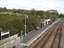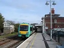 The station is to the north of the town centre, between two level crossings.[2] There are two platforms, one for trains to Ashford and the other for Hastings. The line is double track through the station providing a passing loop for trains on the Marshlink line, which is single track between Ore and Appledore. The staggered platforms are linked by footbridge. There is a waiting room on Platform 2 (Hastings bound).[3]