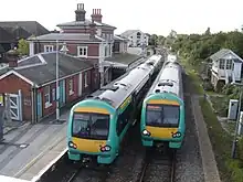 Rye railway station is a Grade II listed station, serving Rye, East Sussex, England. It is on the Marshlink line between Hastings and Ashford International and is the principal station between those two terminals. The station is a passing place between two single track sections. Services are provided by Southern, usually between Eastbourne and Ashford with an additional shuttle from Rye to Ashford at peak times.