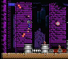 S.C.A.T.: Special Cybernetic Attack Team, also known as Final Mission (ファイナルミッション, Fainaru Misshon) in Japan and Action in New York in Europe,[1] is a science fiction side-view shoot-'em-up produced by Natsume Co., Ltd. for the Nintendo Entertainment System. Within PAL-A regions, the game was only released in the UK.[2] It was released in Japan in 1990, in North America in 1991, and in the PAL region in 1992. It was also later released on the Virtual Console in the PAL region on February 4, 2011, and in North America on February 7 for the Wii and in the PAL region on December 4, 2014 for the Nintendo 3DS and Wii U and was released on the Nintendo Switch via the Nintendo Switch Online service on September 23, 2020.