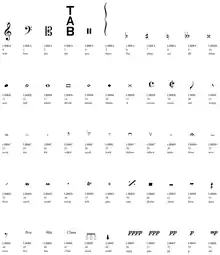 - Pass 1 defines note names (including accidentals and staff position, but not duration), rests (not duration), clefs, measure lines, key signatures, time signatures