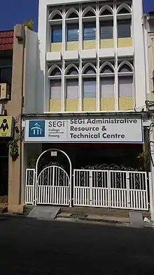 SEGi College Penang is a private college for higher education located in George Town, Penang.[1][2] It serves as SEGi University's education hub for students in the Northern region of Malaysia. SEGi College Penang offers industry-driven diploma and degree programmes in various disciplines. SEGi College Penang offers business, accounting, computing, engineering etc. courses. The college also offers programmes affiliated with University of Sunderland, University of Greenwich and Troy University. SEGi College Penang is rated as a MyQuest 5 Star college.[3][4]