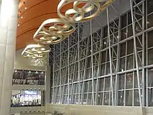 SM City Marikina's is one of the largest building structures in Marikina. The mall features a five-level building (three upper floors function as the mall area and 2 lower floors serve as the indoor parking lots). It has a grand entrance, high ceilings and interplay of glass and steel, with modern Asian influences. Interiors have spacious areas with multicolored lighted ceilings with circle accents.