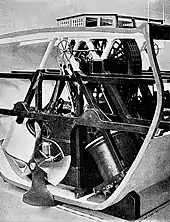 In considering the gearing arrangement, Brunel had no precedent to serve as a guide. The gearing for Archimedes, of the spur-and-pinion type, had proven almost unbearably noisy, and would not be suitable for a passenger ship.[28] Brunel's solution was to install a chain drive. On the crankshaft between Great Britain's two engines, he installed an 18-foot (5.5 m) diameter primary gearwheel,[29] which, by means of a set of four massive inverted-tooth or "silent" chains, operated the smaller secondary gear near the keel, which turned the propeller shaft. This was the first commercial use of silent chain technology, and the individual silent chains installed in Great Britain are thought to have been the largest ever constructed.[30]